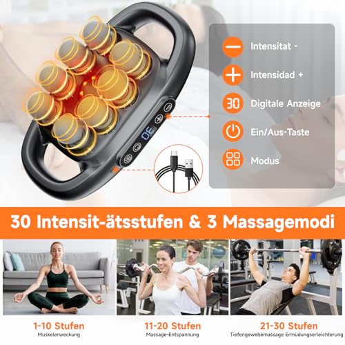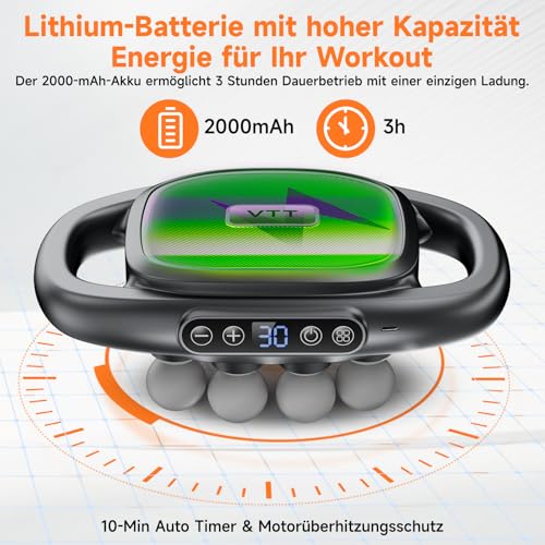 【Leistungsstarkes Massagepistole】Unser 8-Kopf-Massagegerät verfügt über einen leistungsstarken Motor, der eine 25 mm hohe Intensitätsmassage liefert und effektiv tiefe Muskelschichten anspricht, um Steifheit zu lösen, Schmerzen zu lindern und Stress zu lindern. Perfekt zur Beschleunigung der Erholung nach dem Training, gewährleistet dieses Muskelmassagegerät optimale Leistung bei jeder Sitzung. • 【Verbessertes 16-Gang-Signaturmodell】Erleben Sie die Kraft unseres verbesserten 16-Gang-Antriebssystems, das für starke Leistung und präzise Kontrolle entwickelt wurde. Dieses Muskelmassagegerät verfügt über ein fortschrittliches 4-Hebel-Antriebssystem mit hochwertigen Metallkomponenten für gleichbleibende Leistung auch bei hoher Belastung. • 【Vielseitige Behandlungsmodi】Mit 30 Intensitätsstufen und intelligenten Einstellungsoptionen kann dieses Muskelmassagegerät gezielt bestimmte Muskelgruppen ansprechen. Ob Sie eine Behandlung für tiefe Gewebe benötigen oder sanfte Entspannung wünschen, unser Gerät bietet mehrere Lösungen, die auf Ihre Erholungs- und Entspannungsbedürfnisse zugeschnitten sind. • 【Lange Akkulaufzeit & Ultra-leiser Betrieb】Genießen Sie mit unserem neuen 8-Kopf-massage gun bis zu 2 Stunden ununterbrochene Nutzungsdauer, das von einem robusten 2000mAh-Akku und schnellem Typ-C-Laden betrieben wird. Der hochwertige Motor verfügt über dreifache Barrieren zur Geräuschreduzierung und gewährleistet ein ruhiges und komfortables Erlebnis in jeder Umgebung – sei es zu Hause, im Büro oder im Fitnessstudio. • 【Perfektes Geschenk für Fitness-Enthusiasten】Unser Muskelmassagegerät erfreut Fitnessliebhaber und Entspannungssuchende gleichermaßen. Seine leistungsstarken muskelentspannenden Eigenschaften machen es zu einem idealen Geschenk für effektive Erholung und tägliche Entspannung. Handgefertigt für Langlebigkeit und ausgestattet mit fortschrittlichen Funktionen, bietet dieses Massagegerät eine außergewöhnliche Benutzererfahrung für jeden Anlass.
