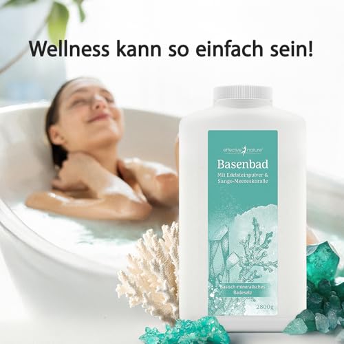 effective nature Basenbad – basisches Badesalz mit Sango-Meereskoralle & Edelsteinpulver – ergiebiger Badezusatz fürs Vollbad, Sitzbad & Fussbad – Wellness & Regeneration nach dem Sport – 2800 g
