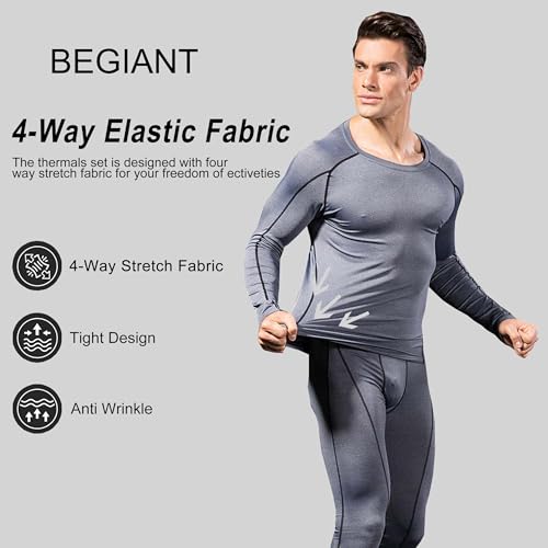 BEGIANT Kompressionsanzug Herren Trainingsanzug Atmungsaktive Langarm Kompressionsshirt Lange Kompressionshose Schnelltrocknende Funktionswäsche Sportswear Laufanzug Männer Fitness Gym Sport Set