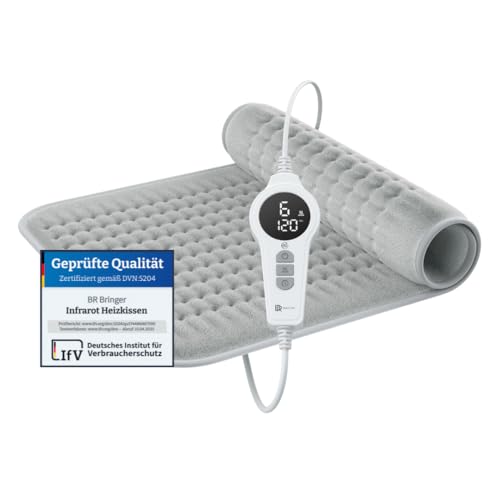 BR Bringer Infrarot Heizkissen mit Abschaltautomatik – Wärmekissen mit Tiefenwärme – 6 Heizstufen (25-60°C), Überhitzungsschutz, Waschbar, LED Display, Extra weiches Flanell (Grau, 70 x 40 cm)