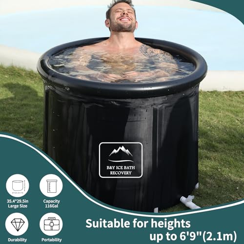 B&Y Eisbad Tonne für Athleten mit Abdeckung, 90cm Ø Groß tragbares Ice Bath tub für Kryotherapie, 477L Faltbare Aufblasbare badewanne für den Innen- und Außenbereich Erwachsene
