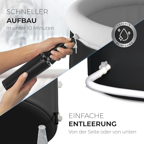 AUSREICHEND PLATZ FÜR DEINE BEINE: Mit 130 cm Länge bietet unser Eisfass genügend Raum, um vollständig einzutauchen – für ein entspanntes und effektives Kälteerlebnis • UNSCHLAGBARE STABILITÄT: Dank des robusten Metallrahmens bleibt unsere Eistonne für zuhause sicher und standfest – keine Kompromisse wie bei Plastik- oder Aluminiumrahmen • NUTZE DIE KRAFT DER KÄLTE: Eisbaden schüttet Endorphine aus, fördert die Entspannung, beschleunigt die Regeneration und sorgt für ein nachhaltiges Wohlgefühl im Alltag • SCHNELLER AUFBAU & EINFACHE REINIGUNG: Die Eiswanne ist in weniger als 10 Minuten aufgebaut und dank seitlichem sowie unterem Abfluss unkompliziert zu entleeren und zu reinigen • KOMPLETT SET: Alles dabei – Thermodeckel, Allwetter-Abdeckung, Komfort-Ring und zweiter Auslauf für ein Kühlgerät. Perfekt ausgestattet für dein Kälteerlebnis