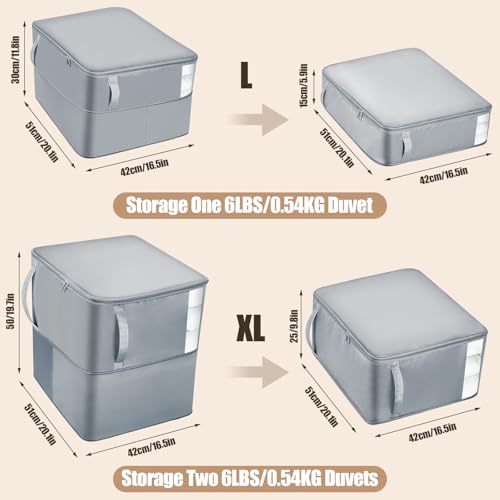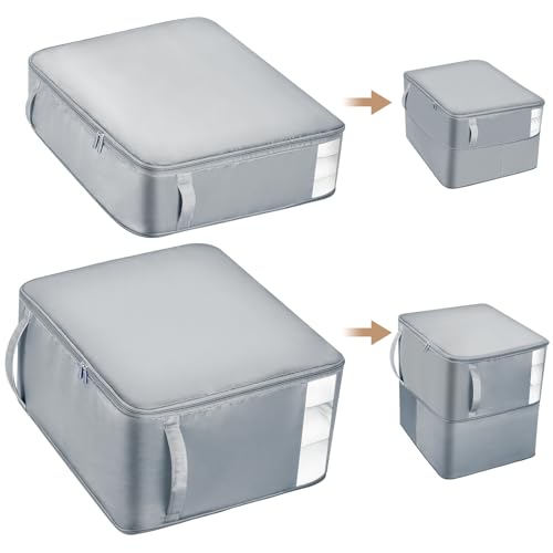 Euqvunn 2 Stück Platzsparender Komprimierender Organizer, Aufbewahrungstasche für Bettdecken, Extra Große Faltbare Selbstkomprimierender Organizer mit Sichtfenster für Umzug, Reisen (Grau,L+XL)