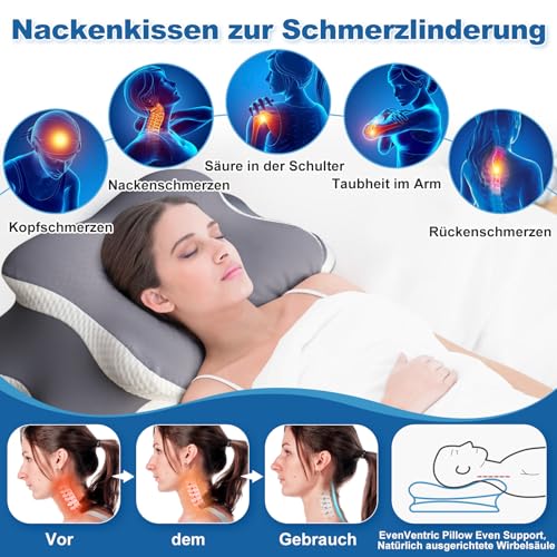 EvenVentric Nackenkissen Kopfkissen – Ergonomisches Kopfkissen Nackenschmerzen für Seiten, Rücken & Bauchschläfer, Memory Foam Kissen mit Kühlung abnehmbare Kissenhülle (Grau)