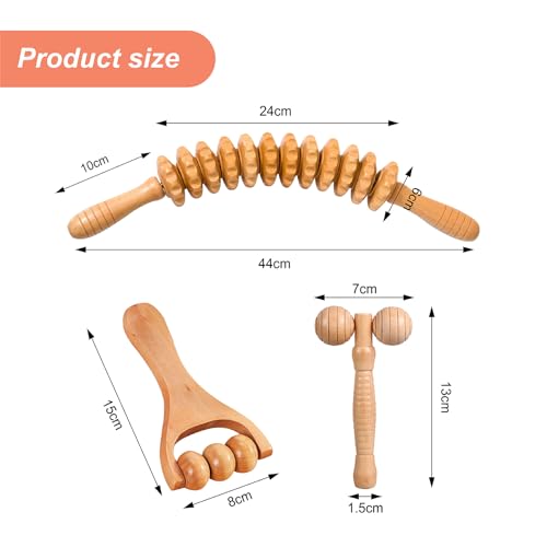 GYHWOFUL 3 Stück Faszienstab Holz – Nacken Fuß Wirbelsäule Beine Jawline 12 Runden Massageroller, Muskelentspannung lymphdrainage Lindert Müdigkeit Faszienstab, für Zuhause, Büro, Reisen