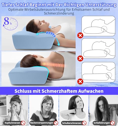 ✅ [Nacken- und Schulterschmerz-Kissen für alle Schlaftypen]: Dieses ergonomische Nackenkissen bietet optimalen Halt für Nacken und Schultern und eignet sich ideal für Seitenschläfer, Rücken- und Bauchschläfer. Die konturierte Form richtet die Wirbelsäule aus, entlastet Druckpunkte und mindert Beschwerden – für einen erholsamen Schlaf ohne Schulterschmerzen oder Nackensteifheit. • ✅ [Langlebiges und formbeständiges Memory-Schaum-Kissen]: Das Seitenschläferkissen aus hochdichtem, Memory-Schaum passt sich Kopf und Nacken an und behält seine Form dauerhaft. Das garantiert langanhaltende Unterstützung und gleichbleibenden Komfort. Es ist nach dem Auspacken geruchsfrei und sorgt vom ersten Tag an für ein sicheres und frisches Schlaferlebnis. • ✅ [Kühlender Komfort die ganze Nacht]: Der spezielle kühlende Bezug des Kissens sorgt für eine angenehme Nachtruhe, indem er Wärme effektiv ableitet und die Luftzirkulation optimal fördert. Die innovative Technologie reguliert die Temperatur und verhindert Überhitzung. So bleibt der Schlafkomfort auch bei warmem Wetter oder während der Sommermonate gewährleistet, ohne dass Sie schwitzen oder das Kissen wenden müssen. • ✅ [Anpassbares Orthopädisches Kissen mit 2 Höhen]: Dieses ergonomische Kissen bietet zwei Höhen für eine individuelle Anpassung an verschiedene Körpergrößen und Schlafpositionen. Der druckentlastende Hohlraum in der Mitte stützt Nacken und Kopf optimal, fördert eine gesunde Ausrichtung der Wirbelsäule und reduziert Verspannungen. Egal, ob Sie Seitenschläfer, Rücken- oder Bauchschläfer sind – die verstellbare Höhe sorgt für maximalen Komfort und erholsamen Schlaf. • ✅ [Pflegeleicht, hygienisch und langlebig]: Der hochwertige Bezug ist abnehmbar, mit Reißverschluss versehen und maschinenwaschbar bei 40°C, was eine einfache Pflege und dauerhafte Hygiene garantiert. Die Kombination aus Baumwolle und Polyester ist besonders hautfreundlich und strapazierfähig. Das Schlafkissen mit seinem einzigartigen Hohlraum-Design bleibt immer frisch und sauber, sodass Sie sich Nacht für Nacht auf eine angenehme und gesunde Schlafumgebung freuen können.