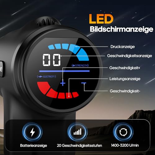 【Leistungsstarkes Massagegerät】: Unsere AERLANG massagepistole mit wärmefunktion, dass sie ein leistungsstarkes und effektives Massageerlebnis bietet. Mit einer maximalen Geschwindigkeit von 3200 Umdrehungen pro Minute und einer Amplitude von 8 mm verfügt das massagepistole auch über eine LED-Anzeige, die Geschwindigkeit, Druckintensität und Batteriestand in Echtzeit anzeigt, so dass Sie die Einstellungen für eine komfortable und problemlose Massageerfahrung leicht anpassen können • 【Beheizte Massageköpfe】: Das massagegerät hat drei Temperaturstufen zur Auswahl: grün (ca. 113°F), gelb (ca. 122°F) und rot (ca. 131°F). Halten Sie die Einschalttaste 3 Sekunden lang gedrückt, um das Gerät einzuschalten; die Batterieanzeige zeigt den aktuellen Batteriestand an und die niedrigste Heizstufe wird aktiviert. Die Temperatur kann mit einem einzigen Tastendruck geändert werden, wobei zwischen niedriger, mittlerer und hoher Einstellung gewechselt wird • 【Intelligenter 10-Minuten-Schutz】: Unser massage gerät verfügt über einen intelligenten 10-Minuten-Schutz, der sich nach 10 Minuten Dauerbetrieb automatisch abschaltet. Darüber hinaus kann es über ein A-C- oder C-C-Kabel aufgeladen werden, um es überall und jederzeit schnell aufzuladen, so dass es leicht zu tragen ist • 【Empfohlene Erstaufladung】: Aufgrund des hohen Stromverbrauchs während des Versands wird empfohlen, das nackenmassagegerät nach Erhalt 8 Stunden lang aufzuladen, um die Batterie vollständig zu aktivieren. Wenn der Akku nicht blinkt, bedeutet dies, dass er vollständig aufgeladen ist. Das massager schaltet sich nach 10 Minuten automatisch ab, um mehr Komfort und Sicherheit zu gewährleisten • 【Kompakt und praktisch, geeignet für Geschenk】: Diese massagegeräte kommt mit einer Tragetasche, das Produkt ist leicht und einfach zu tragen. Ob Sie auf Reisen, bei der Arbeit oder zu Hause sind, können Sie die Vorteile einer Massage jederzeit und überall genießen. Darüber hinaus ist es auch ein geeignetes Urlaubs und Geburtstagsgeschenk für Frauen, Männer, Väter und Mütter