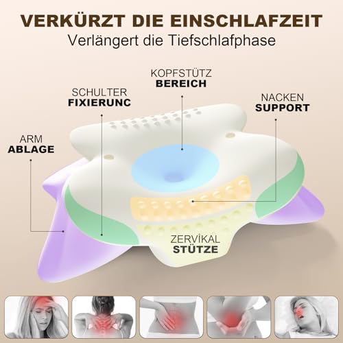 Orthopädisches Nackenkissen mit 2 Höhen – passt sich allen Körperformen und Schlafpositionen an. Ideal für Rücken-, Seiten- und Bauchschläfer • 3D-Noppen-Luftzirkulation & Cool-Fabric – optimierte Wärmeableitung und Feuchtigkeitsregulierung. Mit hautfreundlichem Seidenbezug für frischen Schlafkomfort bei jedem Wetter. (Bezug bei max. 40°C waschbar) • OEKO-TEX STANDARD 100 zertifiziert – Hypoallergen Speziell für Allergiker entwickelt: Frei von Pestiziden und reizenden Substanzen. Für alle Hauttypen geeignet.Produkthinweis: Eventueller Transportgeruch ist unbedenklich. Bitte vor Nutzung 6-24 Std. bei Raumtemperatur auslüften lassen. • 15° Ergonomisches Design – NASA-validierte Wirbelsäulenausrichtung für C1-C7 Reduziert Nackensteifheit und fördert entspannten Schlaf. Besonders geeignet bei Schlafstörungen: Verkürzt die Einschlafzeit & Verlängert die Tiefschlafphase • 30 Tage risikofreies Probeschlafen – Direkt vom Hersteller mit 100% Geld-zurück-Garantie.Unser 24-Stunden-Kundenservice bietet sorgenfreie Lösungen – „Ohne Wenn und Aber“. • Das perfekte Geschenk – für mehr Wohlbefinden Ihrer Liebsten Gesundheitsgeschenk für Familie & Freunde – Für jeden Festtag das richtige Geschenk!
