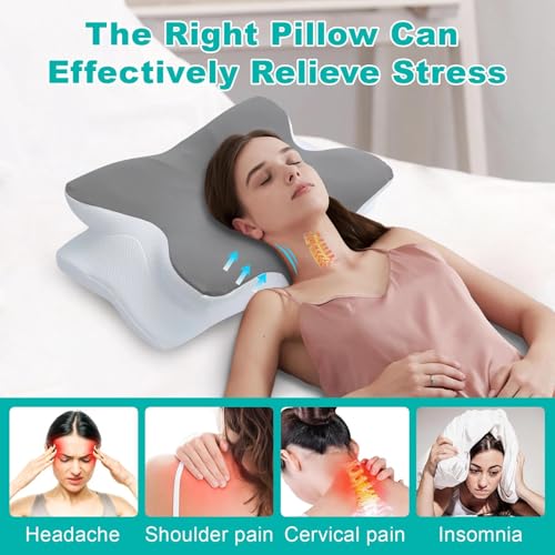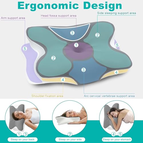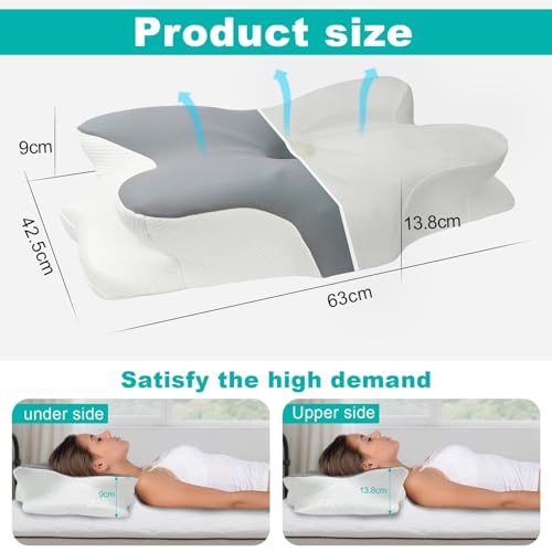 Ergonomisches Design, Wissenschaftliche Dekompression: Der hochwertige Tiefschlaf, von dem Sie träumen, verabschieden Sie sich von Schmerzen. Das nackenkissen kopfkissen hat fünf einzigartige Konturbereiche und ist in zwei Höhen (13,8 cm/9 cm) erhältlich. Es passt sich der natürlichen Krümmung des Nackens an, stützt den Kopf geschickt, passt sich perfekt der Wirbelsäule an, fördert effektiv eine gleichmäßige Atmung und ermöglicht Ihnen einen ruhigen Schlaf! • Hochwertiger Memory-Schaum Mit Langsamer Rückfederung: Der weiche Kern des ergonomisches kopfkissen hat eine 5D-Dichte und fühlt sich wie Baumwolle an. Der äußere Kissenbezug ist hautfreundlich und atmungsaktiv und fördert die Luftzirkulation. Egal zu welcher Jahreszeit, ob Tag oder Nacht, genießen Sie ein erholsames und komfortables Schlafklima, das Ihren hohen Ansprüchen an die Schlafqualität gerecht wird. • Für verschiedene Schlafpositionen: Dieses einzigartige schlafkissen in Schmetterlingsform misst 63 x 42,5 x 13,8/9 cm. Die größere Größe ist für verschiedene Schlafpositionen konzipiert und eignet sich für Rücken-, Seiten- und Bauchlage. Es trägt zu einer besseren Schlafhaltung bei und lindert Nackenermüdung, die durch langes Arbeiten und Lernen entsteht. Es verbessert die Gesundheit bereits in der Schlafphase und ist eine praktische Wahl für Menschen, denen ein gesunder Schlaf wichtig ist. • Abnehmbarer Kissenbezug: Öffnen Sie den Druckknopf in der Mitte des memory foam kissen und öffnen Sie den Reißverschluss, um den Kissenbezug abzunehmen. Der Kissenbezug ist maschinenwaschbar. Das schlafkissen verfügt außerdem über einen schützenden Innenbezug, der atmungsaktiv ist und Sie nicht schwitzen lässt. Der Kissenkern ist nicht maschinenwaschbar. Legen Sie ihn an einen kühlen Ort und tupfen Sie ihn einige Male trocken, um ihn sauber und trocken zu halten. • Beste Wahl: Haben Sie immer noch Angst, kein passendes Kissen zu finden? Dann ist unser ergonomisch geformtes kissen nackenschmerzen die beste Wahl! Gleichzeitig ist dieses pillow auch die beste Geschenkidee. Es ist das perfekte Geschenk für jeden Anlass wie Weihnachten, Thanksgiving, Valentinstag, Vatertag oder Muttertag und sorgt für einen angenehmen Schlaf für Sie und Ihre Liebsten.