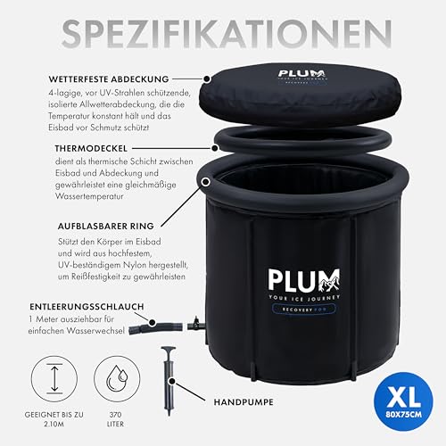 PLUM – Eisbad (Ø80cm) XL Komplettset – Eistonne mit Eisbaden Zubehör – Ice Bath für Kryotherapie Zuhause – Faltbare badewanne mit 5 dicken Isolierschichten – Eisbaden Tonne