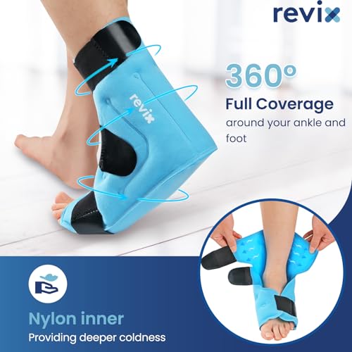 REVIX Extra großer Eisbeutel für Fußbeschwerden, wiederverwendbares Gel-Kältepack mit Kältekompressionstherapie, volle Abdeckung, Knöcheleiswickel für Erholung nach dem Training
