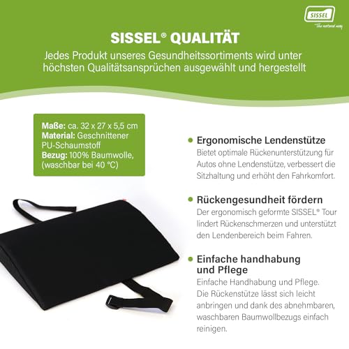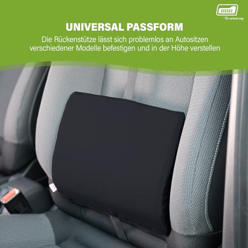 SISSEL® Autolendenkissen Tour Schwarz | Ergonomische Lendenstütze für PKW | Höhenverstellbar, PU-Schaum & 100% Baumwollbezug | Universal Rückenlehne für Sitzkomfort & Rückengesundheit