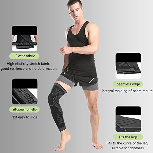 Schmerzlinderung und schnelle Genesung: Unsere Kniebandagen für Knieschmerzen mit Kompression können die Durchblutung und den Sauerstofffluss fördern, um Knie- und Wadenschmerzen zu lindern, Krampfadern und Schwellungen der Beine zu reduzieren. Perfekt für Arthritis, Sehnenscheidenentzündung, Schwellungen, Meniskusriss, Zerrungen, Verstauchungen, Wadenkrämpfe und Erholung nach Operationen. • HOCHWERTIGES MATERIAL: Am Oberschenkel befindet sich eine Silikon Anti-Rutsch-Streifen, die ein Abrutschen verhindert. Das Material glänzt mit hoher Elastizität, antibakteriellen Eigenschaften, einer Abführung der Feuchtigkeit nach Außen für Atmungsaktivität und Thermoregulation • Perfekte Unterstützung und Schutz: Unsere Bein-Kompressionsmanschetten mit hervorragendem verlängertem 3D-Design bieten eine perfekte 360°-Passform für umfassenden Schutz und Wärme von Ihrer Wade bis zum Oberschenkel. Mit unseren langen Beinstulpen können Sie Verletzungen effektiv verhindern, die durch Bewegung oder jede Aktivität verursacht werden, die Druck auf Ihre Knie und Wadenmuskulatur ausübt. • Für verschiedene Sportarten: Die Kniestütze stabilisiert durch Kompressionswirkung. Zum Schutz vor Überlastungen, Zerrungen und Schmerzen. Geeignet für alle Arten von Outdoor-Sportarten, wie Basketball, Tennis, Badminton, Fußball, Volleyball, Laufen, Outdoor-Klettern, Wandern und andere Sportarten. • Geeignet für Alltagskleidung: Passt zu Männern und Frauen. Überprüfen Sie einfach die Größentabelle auf die passende Passform. Handwäsche ist empfehlenswert, unter 40℃.