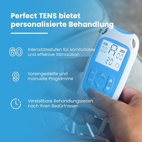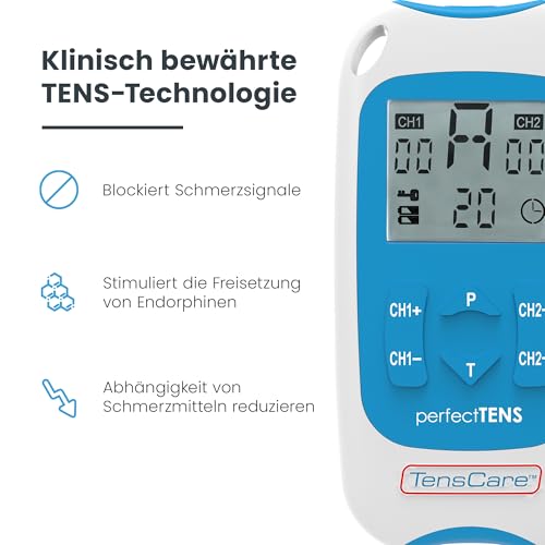 TensCare Perfect Tens – Elektrostimulator TENS-Gerät für Schmerzlinderung, 2 Kanäle, elektrische Nervenstimulation
