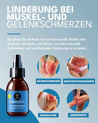 ULTRA REIN & NATÜRLICH – Reines ZECHSTEIN Inside aus den Niederlanden. Das organische Magnesiumöl ist frei von Konservierungs- und Duftstoffen sowie von anderen Zusätzen. GERUCHSNEUTRAL. Das Spray enthält 31 % Magnesiumchlorid. Es wird in seinem natürlichen, unveränderten Zustand gewonnen, frei von Schadstoffen und moderner Verschmutzung. • 100 % ROH – Wir verwenden KEINE industriellen Prozesse – dadurch bleibt das organische Magnesium REIN & SICHER. Unser Magnesiumöl wird aus dem unberührten 250 Millionen Jahre alten Zechstein Meeresboden extrahiert. • EINFACHE ANWENDUNG – Ihre Haut wird das Magnesium Spray problemlos aufnehmen. Sprühen Sie das Magnesiumöl auf die Haut und massieren Sie es mit sanften Bewegungen ein. Es ist besonders gut, das Magnesium Spray vor dem Schlafengehen zu benutzen oder es nach dem Duschen auf die feuchte Haut zu sprühen. Das Produkt hat eine seidige und ölige Konsistenz, wenn es auf die Haut aufgetragen wird. • BEQUEM MITZUNEHMEN – Die 100 ml Magnesiumöl ist dicht verschlossen und transportabel. Sie kann einfach in einer Tasche mit zur Arbeit genommen oder in Ihrem Bade- oder Schlafzimmer untergebracht werden. Das Öl ist geruchsneutral und mit Wasser leicht abwaschbar, sollte es in Kontakt mit Ihrer Kleidung oder Bettwäsche kommen • SIE SIND UNSERE HÖCHSTE PRIORITÄT – Wir glauben an exzellenten Kundenservice. Wenn Sie Fragen oder Bedenken haben, zögern Sie bitte nicht, uns zu kontaktieren, und wir werden unser Bestes tun, um das Problem so schnell wie möglich zu lösen.
