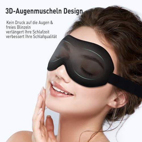 Umisleep 2er Pack Schlafmaske für Seitenschläfer, 3D-Augenhöhlen und verstellbares Gummiband, lichtblockierend und atmungsaktiv, Augenmaske für Männer Frauen, für Reise-Yoga, Schwarz/Schwarz