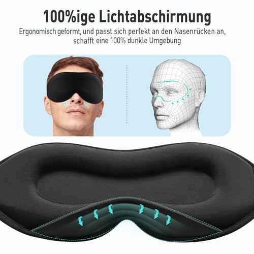 Entworfen für Seitenschläfer: Die dünnere Seitenpartie passt sich besser der Wölbung Ihren Schläfen an und reduziert den Druck auf Ihre Schläfe, somit sorgt sie für einen besseren Schlaf und gute Entspannung • Atmungsaktiv und komfortabel: Die perfekte Kombination aus Eisseiden (eine Art künstliche Naturfasern) und Gedächtnisschaum-Futter. Weich und bequem, ohne stickig zu sein, so dass Sie immer entspannt und bequem Schlaf können • Nasenpads zur Lichtabschirmung: Umisleep hat sich auf Augenmasken für den Schlaf spezialisiert. Diese Maske ist ergonomisch designt, sodass sie sich sanft an den Nasenrücken schmiegt. Zusätzlich ist sie mit einem verdunkelnden Nasenpad ausgestattet und dadurch schafft sie eine komfortable dunkle Umgebung für Sie • 3D-Augenmuscheln: Die 10 mm tiefe Augenmuscheln erlauben das freie Blinzeln Ihrer Augen und üben keinen Druck auf Ihre Augen aus • Einstellbares Gummiband: Das hochelastische Gummiband in sehr guter Qualität passen den meisten Kopfgrößen. Sie brauchen sich keine Sorge mehr um die Bandlänge machen, einfach kaufen mit Vertrauen • Zuverlässige Qualität und Service: UMISLEEP Schlafmasken besitzen die international anerkannte COA-Zertifizierung und ein perfektes Kundenservice-Team, um Ihre Anliegen jederzeit zu beantworten • Gebrauchsanweisung und Pflege: Wir empfehlen Ihnen, die Maske nach Erhalt per Hand mit Wasser zu waschen und an der Luft zu trocknen. Waschen Sie die Augenmaske auch 1-2 Mal pro Woche per Hand, um sie sauber zu halten. Bitte stellen Sie das elastische Band auf eine für Ihre Augen angenehme Länge ein und genießen Sie ein angenehmes Schlaferlebnis