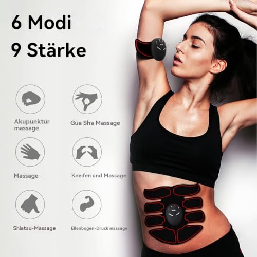 Effektives EMS-Training: Modernste Elektrostimulation sorgt für einen schnellen Muskelaufbau und unterstützt die effektive Fettverbrennung – erleben Sie spürbare Ergebnisse schon nach kurzer Trainingszeit. • Flexibles Trainingsgerät: Unser EMS Körpertrainer ist ideal einsetzbar – ob im eigenen Zuhause, im Fitnessstudio oder unterwegs. Dank variabler EMS Intensitätsstufen passt sich das Training Ihrem individuellen Fitnessniveau an. • Zeitsparend & Effizient: Verkürzen Sie Ihr Training und erzielen Sie sichtbare Erfolge mit gezielten EMS-Impulsen, die Ihren Stoffwechsel ankurbeln und den Muskelaufbau beschleunigen. • Anwenderfreundlich und Sicher: Speziell entwickelte EMS-Pads haften auch bei Schweiß und Bewegung zuverlässig – so genießen Sie ein sicheres und komfortables EMS-Training, das sich für Einsteiger und Profis gleichermaßen eignet. • Ganzheitliches Workout: Erreichen Sie eine optimale Körperstraffung und definierte Muskulatur durch ein intensives EMS-Workout, das alle wichtigen Muskelpartien – von Bauch über Beine bis zu Po und Armen – gezielt anspricht.