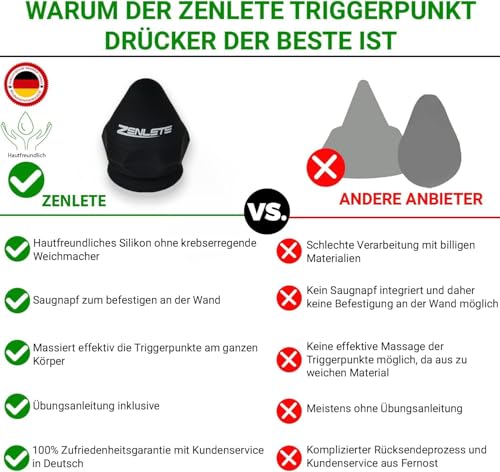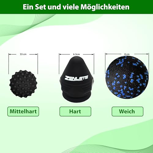 zenlete Massageball 3er Set – Faszienball & Triggerpunkt Drücker für Selbst-Massage Akupressur gegen Schmerzen, Rücken, Nacken, Füße – Kegelball mit Saugnapf, Igelball & weicher Faszien Ball