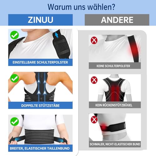 ✔️【Hinweis】: Bitte messen Sie Ihren Taillenumfang auf Höhe Ihres Bauchnabels. Beachten Sie beim Kauf eines Rücken Geradehalter bitte die im Titel angegebene Größe. Unsere Taillenbänder und Schultergurte sind aus elastischem Material gefertigt. Wenn Ihr Taillenumfang genau zwischen zwei Größen liegt, empfehlen wir Ihnen, die kleinere Größe zu wählen. • ✔️【STARKE 2-in-1 Rückenstützgürtel und Haltungskorrektur】Unser Rücken Geradehalter ist mit 2 flexiblen ABS-Stützstangen. Passt sich der Körperkurve an, bietet mehr Unterstützung für Rücken, Nacken und Schultern, eine gerade Haltung zu ermöglichen. • ✔️【Bequemes und Atmungsaktives Mesh-Material】 Der Haltungskorrektur Rücken Damen und Herren besteht aus weichem und atmungsaktivem Netzgewebe, das bequem, leicht und atmungsaktiv ist. Gerader Rücken Geradehalter verhindert Überhitzung und Schwitzen und leicht zu reinigen und zu trocknen ist. • ✔️【Einstellbar & Ergonomische Struktur】 Anders als andere, nimmt ZINUU Rücken Geradehalter den unteren Rücken Kreuzpunkt und die elastischen verstellbaren Bänder, die das Problem der Achselhöhle Beschwerden löst. Die Schultergurt Haltungskorrektur für Haltung hat auch 2 weiche Schwamm gepolsterte Schultern, die speziell entwickelt, um abnehmbar zu sein, um den Druck auf die Schultern zu lindern. Sie können Ihre Haltung effektiver und bequemer verbessern • ✔️【Verbessern Körperhaltung & FÖRDERT WOHLBEFINDEN】Rückenstützgürtel Entlasten Sie Ihre Schulter, Ihren Nacken und Ihre Taille, indem Sie den Druck von den Schlüsselbereichen Ihres Rückens nehmen, was zu einem verbesserten Wohlbefinden im Alltag führen kann. Ruckenhalterung Korrektur macht Sie stehen aufrecht und selbstbewusster, um sich in einem besseren Leben zu finden • ✔️【WÄHLE DEINE GRÖßE UND FARBE】Dieser Haltungskorrektur Rücken Damen Herren ist in Schwarz, Grau oder Rosa erhältlich. Rücken geradehalter ist leicht und unauffällig, sodass Sie sie problemlos unter Ihrer Kleidung tragen können, ohne dass es jemand bemerkt.Passt sich leicht Ihrer Körperform und Ihren Bedürfnissen an. • ✔️【Erstklssige Qualität & Kaufen Mit Vertrauen】ZINUU Haltungskorrektur Rücken Herren Damen mit fortschrittlicher Textiltechnologie und innovativen Fertigungskonzepten, um eine überlegene Qualität mit höchsten Fertigungsstandards und strengen Prüfverfahren zu gewährleisten. Sie können es als Geschenk für Verwandten, Freunden, Partnern.